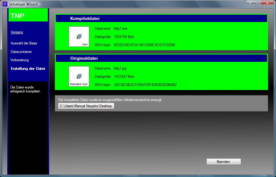 Ein Setvelope Kompilat kann auf jedem Rechner ausgeführt werden, auf dem die .NET 2.0 Runtime installiert ist. Außerdem zeigt das Kompilat, das mit einer unregistrierten Setvelope Version erstellt wurde, einen Informationsdialog an. Wenn Sie Setvelope registrieren lassen, wird dieser Dialog nicht mehr angezeigt. Bitte nehmen Sie in diesem Fall Kontakt auf.