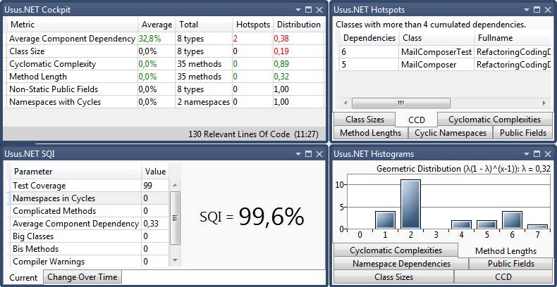 Diese Visual Studio-Erweiterung führt bei jedem Build eine statische Code-Analyse durch und berechnet Metriken. Problematische Stellen im Quellcode lassen sich direkt anzeigen und anspringen. Zusätzlich zeigt die Erweiterung den SQI (Software-Qualitäts-Index) und statistische Häufigkeitsverteilungen der Metriken mit Clean Code-Niveau an.
