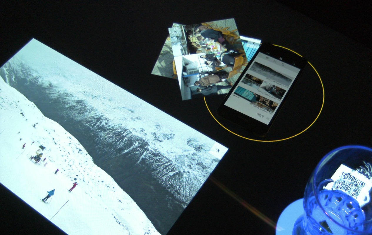 Außerdem können Sie Fotos von Ihrem Smartphone auf Manuels Couchtisch anzeigen und gemeinsam betrachten. Wählen Sie dazu in der App die Bilder aus und legen Sie das Handy dann einfach auf den Tisch. Die Fotos werden sofort neben dem Smartphone angezeigt und können interaktiv betrachtet werden.